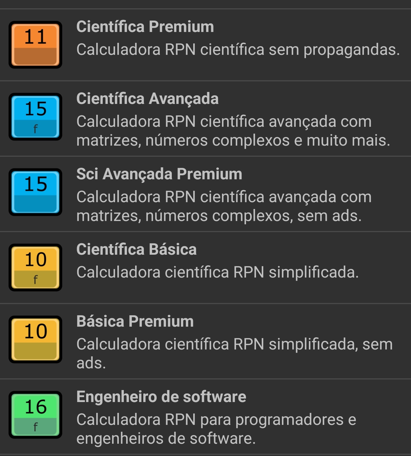 Os tipos "Financeira Premium" e "Científica Premium" são funcionalmente iguais aos tipos gratuitos, porém removem as propagandas.