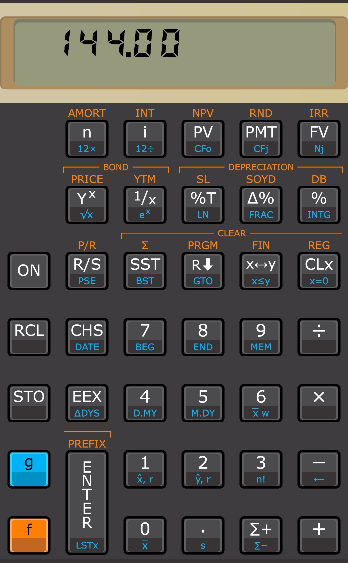 Right side, quick touch: copy the displayed value (the X register) to the clipboard. The LCD blinks once briefly.