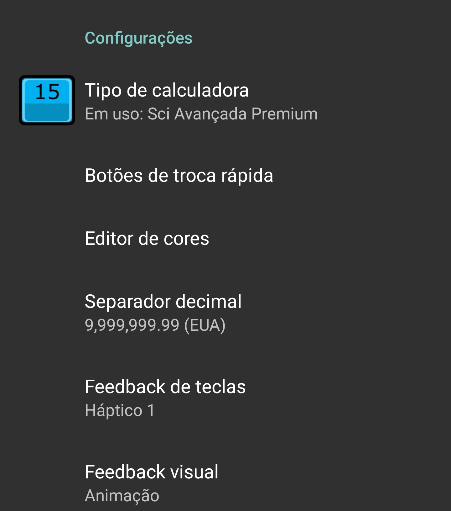 Touch RPN Android: sobre as Configurações